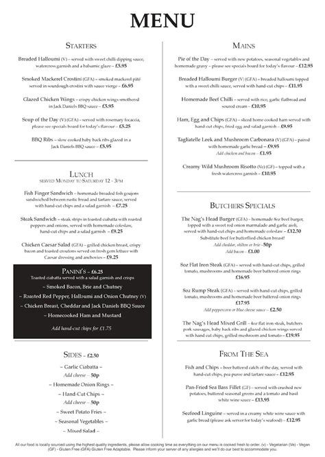 The Nags Head Menu