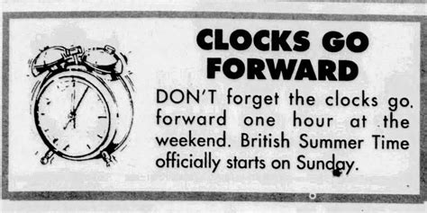Even the us started to implement daylight saving time. The clocks will go forward at 1am on the sunday, meaning we lose an hour of sleep. This is when the clocks revert to greenwich mean time (gmt). When did clocks go forward?